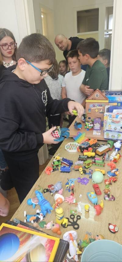 Dječji tjedan je u Osnovnoj školi Milana Šorga Oprtalj, na prijedlog Vijeća učenika, obilježen akcijom razmjene igračaka. Učenici su donosili u školu korištene igračke koje im više nisu potrebne. U prikupljanju, sortiranju i slaganju igračaka pedagoginji su pomogli učenici koji pohađaju izvannastavnu aktivnost Građanski odgoj i obrazovanje. Razmjena igračaka održala se u ponedjeljak, 6. listopada 2025. U akciju sakupljana i razmjene igračaka uključili su se svi učenici razredne i predmetne nastave. Kroz zabavnu aktivnost razvijamo kod učenika odgovorno potrošačko ponašanje i svijest o važnosti recikliranja i smanjenja potrošnje novih materijala te potičemo socijalnu osjetljivost i solidarnost.