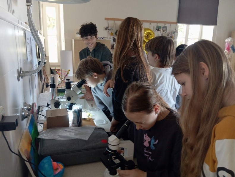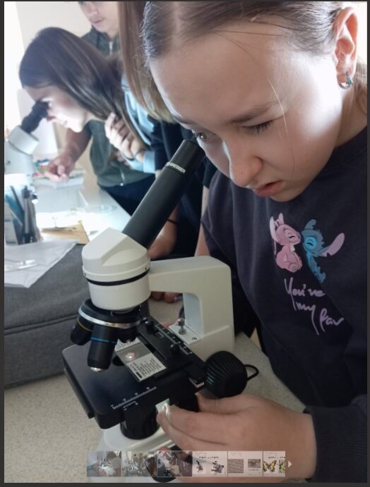 Dana 19. studenoga 2025. je školi kabinet kemije pretvoren u mali laboratorij mikroskopije! Naime, učiteljica iz kemije i biologije Tea Zubin Ferri pokazala je učenicima 7. i 8. razreda sve čari mikroskopije. Nakon kratkog uvoda u to što je mikroskopija, koje istraživačke mogućnosti nudi te od kojih se dijelova sastoje mikroskopi (ne samo oni optički već i oni elektronski) učenici su sudjelovali u kratkom kvizu “Pogodi što gledaš”. Fotografije uvećanih zrnca peludi, ljudske kose, pamuka i svile, krilo pčele, oko muhe, plijesan i nožice vodenog pauka postale su enigmatične strukture biljnog i životinjskog svijeta kojima je učenicima otvoren “mikro” svijet prirode.